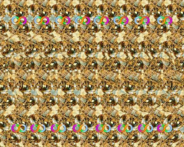One thing that is VERY IMPORTANT is that, when you try to "see" the stereogram, you keep your head level and eyes horizontal with the screen. If you tilt your head just a little bit, it won't work. |
